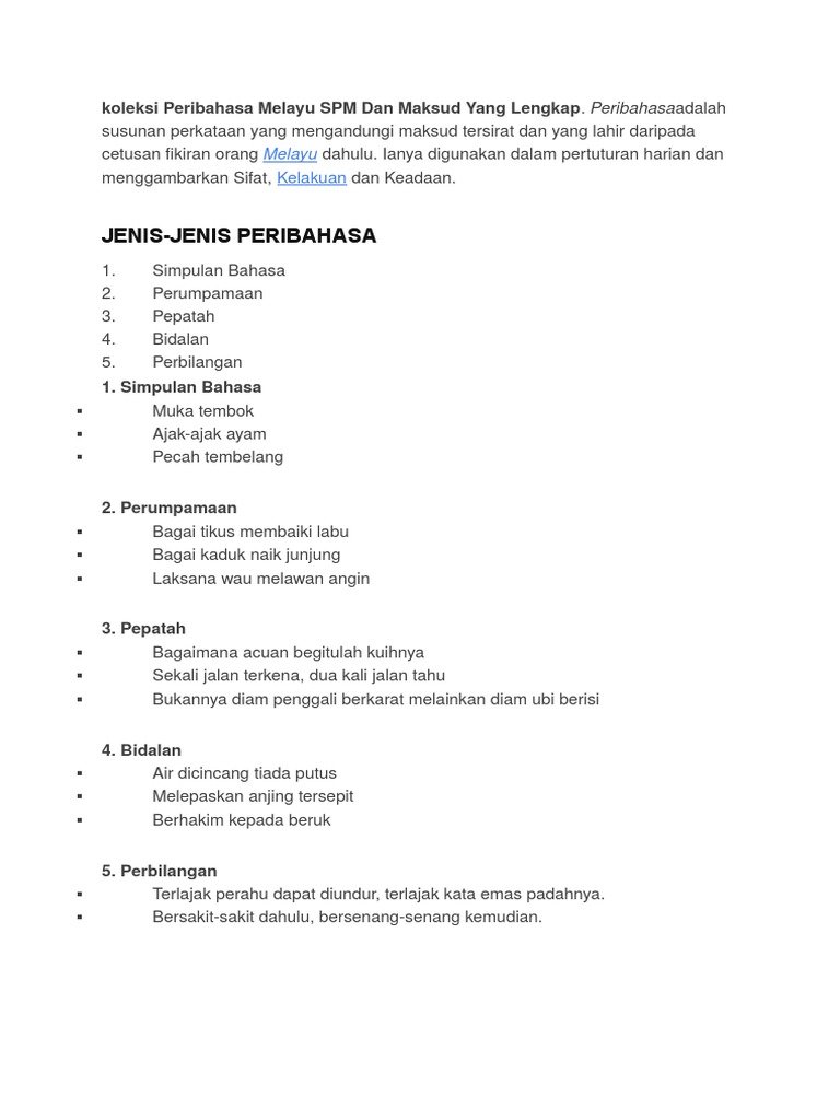 Koleksi Peribahasa Melayu Spm Dan Maksud Yang Lengkap Pdf